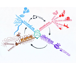 Daarna zet je de tekst in een gestructureerde mindmap, waarbij je ook tekeningen toevoegt om alles visueel te maken.